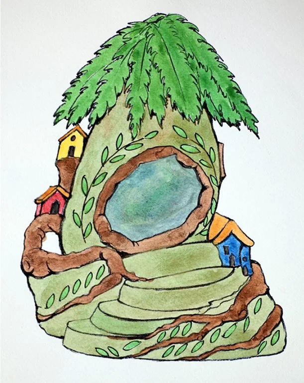 The original artists were: T.J. Dixon, James Nelson, Ellen Phillips, Mary Lynn Dominguez, Alber De Matteis, and Kim Emerson. Tony, Ellen and Mary Lynn were involved only with the first gardens. Each artist presented their individual ideas for the garden’s magical interactive artworks, and a storybook was authored and illustrated by T.J. Dixon. Each work of art typically began with a watercolor conceptual design, accompanied by a 3-dimensional maquette built to scale.