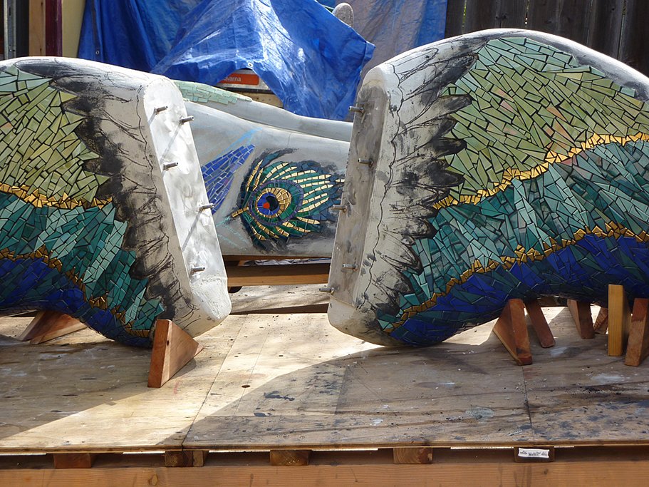 Materials: High-fired ceramic tile mosaics, expanded polystyrene (EPS) & cast bronze