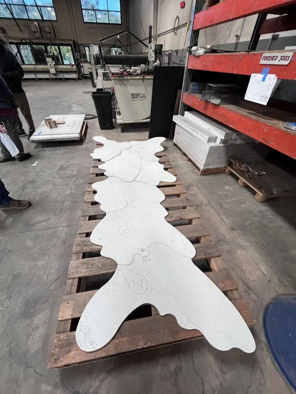 Project Design: Exterior Mural – 7 cement backer board panels bolted to the wall