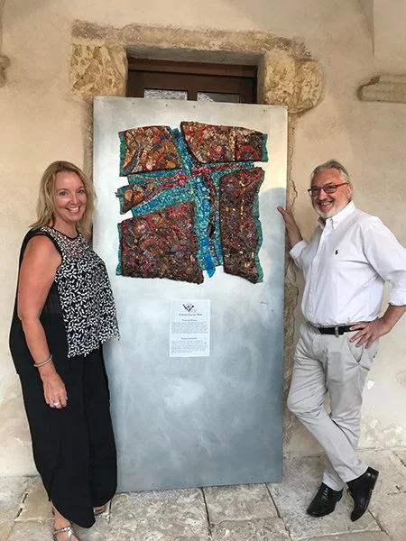 This international symposium in-person event was facilitated, hosted and organized by the Sardinia Contemporary Mosaic & Art organization in Ploaghe. It was a huge honor for Kim to be invited to participate in this event that happens concurrently with the 500 year traditional festival known as the “Ferroagosto”.