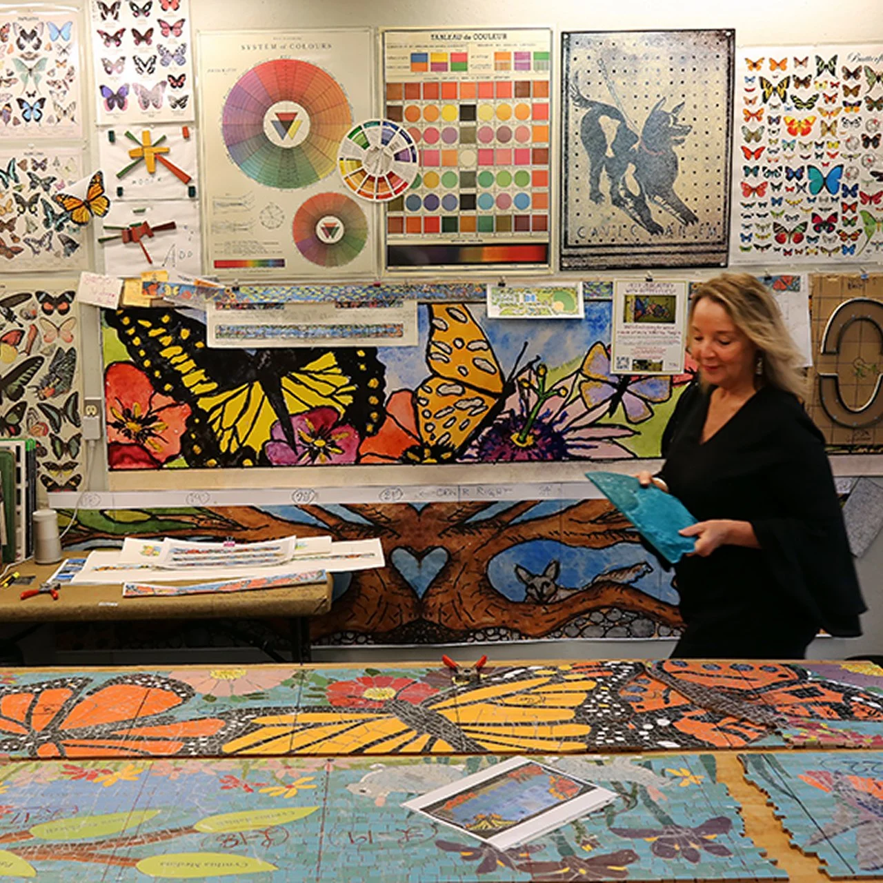 We are a busy and professional artist’s studio, specializing in mosaic art, and located in heart of the City of San Diego, in the community of Normal Heights. All of our projects are custom designed and assembled by hand. Artist Kim Emerson specializes in everything mosaic art and works full-time on a multiple of projects, and sometimes all at once. Her projects range from larger than life public art installations, smaller format wall pieces, residential commissions, and to tiny wearable jewelry. Kim works with her husband, Dennis Reiter, in a multiple of artistic styles, from abstract to representational, depending on the intention of each project.